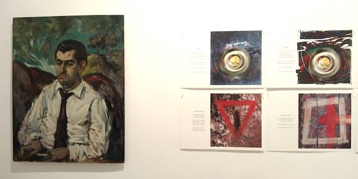 Retrato de Gamoneda, realizado por Jular, junto a algunas pinturas del cuaderno que dedicó al poeta amigo.