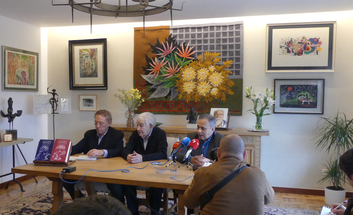 1-pereira-premio-y-obras-c-copia-2 ← Anterior Juan Carlos Mestre, Antonio Gamoneda y Joaquín Otero, durante la presentación del Premio de Poesía y de los dos libros en la Fundación Antonio Pereira, el 28 de diciembre de 2022. Foto: Eloísa Otero.