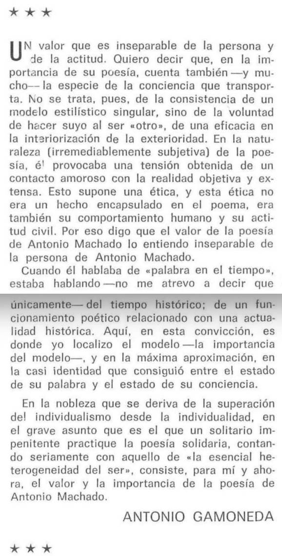 Antonio Gamoneda sobre Antonio Machado (Encuesta en La Estafeta Literaria, 1975)