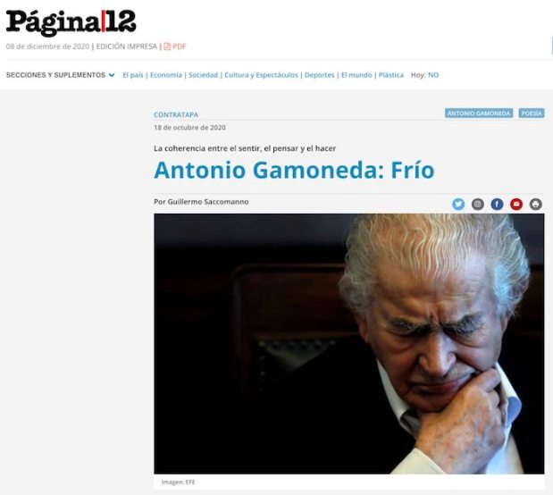 Sí he tenido en cuenta sus dos libros de memorias, Un armario lleno de sombra y La pobreza, porque “mi vida y mi escritura […] son el mismo asunto” y “La poesía no se parece a la vida o tiene que ver con la vida, sino que es la vida”, así como sus propias palabras, algunas de las muchas que ha dedicado a reflexionar, no sin estupor, sobre lo escrito, ya sea en sus libros (la primera parte de La pobreza se titula justamente “La escritura”), en artículos o en las numerosas entrevistas que ha concedido, de las que sólo conozco una mínima parte.