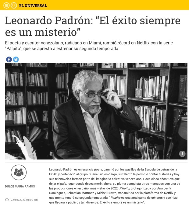 -La biblioteca que ves es pequeña. Mi biblioteca en Caracas tiene más de cuatro mil libros. En una ciudad como Miami que tiene pocas librerías, y menos libros en español, he ido construyéndola de nuevo en mis viajes a Ciudad de México y Madrid, y por supuesto Amazon. En la Feria del Libro de Madrid volví a comprar Poeta en Nueva York de Federico García Lorca, El oficio de vivir de Cesare Pavese, la poesía de Emily Dickinson y Antonio Gamoneda. Son libros de consulta diaria, libros, como diría Laura Restrepo, a los que les rezo con devoción y necesitaba tenerlos de nuevo cerca. Es parte de la reconstrucción de la vida en ese territorio de incertidumbre y de neblina que es el exilio.
