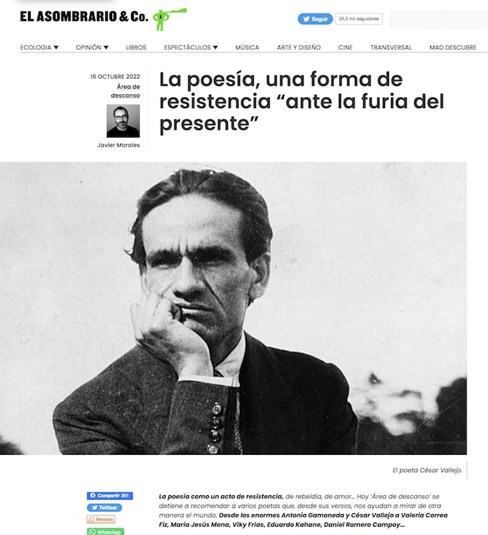 La poesía como forma de resistencia, un artículo en El Asombrario (2022)