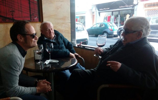 El pintor Rafael Carralero Carabias y el poeta Antonio Gamoneda, poco antes de presentar la exposición “De lumine” en la Sala Provincia (León). © Fotografía: Marcelo Óscar Barrientos Tettamanti.