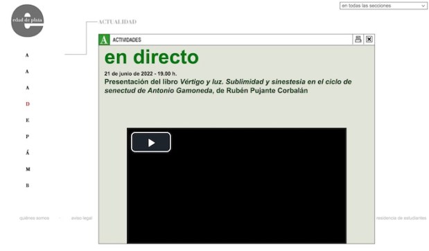 La Residencia de Estudiantes (Madrid) acogerá este martes 21 de junio de 2022, a las 19 horas, la presentación de «Vértigo y luz. Sublimidad y sinestesia en el ciclo de senectud de Antonio Gamoneda», el ensayo con el que el investigador Rubén Pujante Corbalán se alzó hace justo un año, el 22 de junio de 2021, con el XXI Premio Internacional Gerardo Diego de investigación literaria.