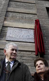 entrega del diploma de hijo adoptivo de la ciudad de león a antonio gamoneda, premio cervantes , con francisco fernandez , alcalde de leon.colocación de una placa en la casa de la infancia de antonio gamoneda