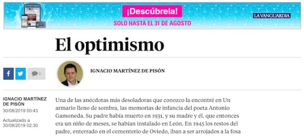 Artículo publicado en La Vanguardia, el 30/08/2019